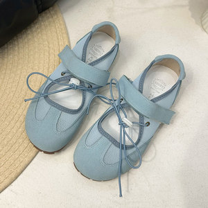 可甜可盐~韩女圆头蝴蝶结单鞋女芭蕾舞网面透气浅口玛丽珍运动鞋