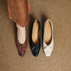 第一層牛革!ブラウン多用途スリムハイヒール 2025 新しい本革スクエアトゥ厚いヒールレトロシングルシューズ女性用