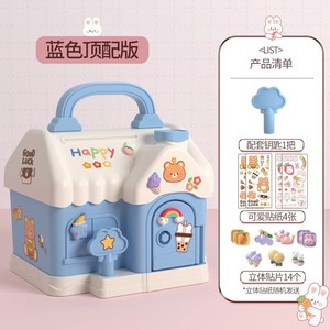 [ブルー ハイエンド エディション] ビッグ ハウス貯金箱 + ステッカー 2 枚 + キー 1 本
