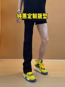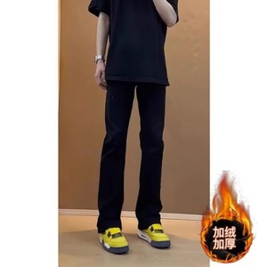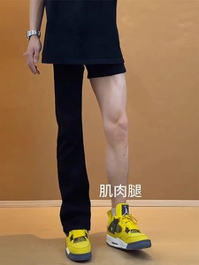 黑色柳叶弯刀牛仔裤男款夏季修身直筒裤子美式高街vibe风微喇裤子