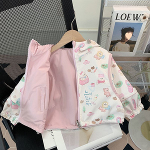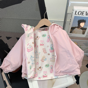 女の子コート 2025 春と秋の新しい秋のベビースタイルトップスフルプリントリバーシブルジャケット