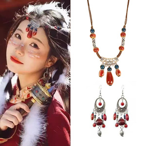 エスニックスタイルセラミックウォータードロップ額チェーンボヘミア旅行写真レトロヘアアクセサリーエキゾチック漢服眉毛ペンダント女性用
