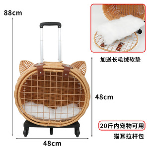 籐ペットトロリーボックス、大容量ポータブル猫と犬のバックパック、見栄えの良いストレススーツケース