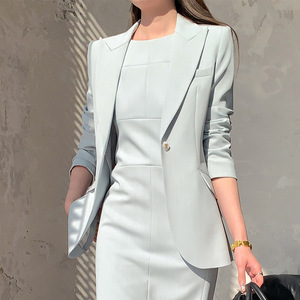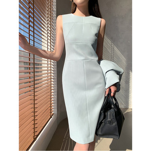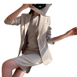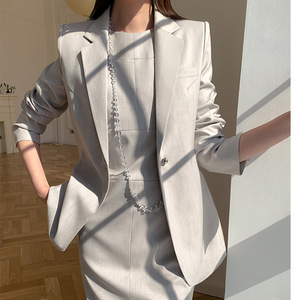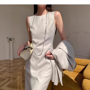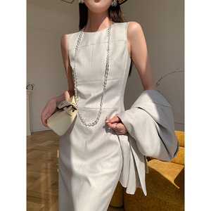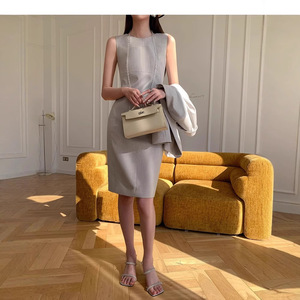 在庫あり 煙灰色スーツワンピースセット レディース 春秋 2025年新作 ヒップカバー ノースリーブ デザイン感 エレガント オフィス向け