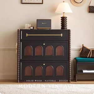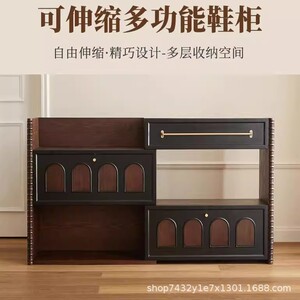 フレンチレトロ無垢材玄関靴キャビネット、アンティークスタイルのホームドア一体型壁収納キャビネット、クリエイティブな伸縮式靴キャビネット