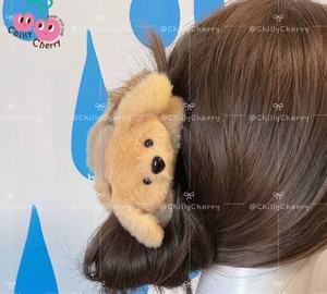 かわいい小さなゴールデンレトリバーシャーククリップぬいぐるみヘアクリップ女性の後頭部ヘアクリップヘアピンヘアアクセサリー