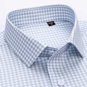 ライトラグジュアリー200カウントピュアコットンDPノンアイロンメンズ長袖ストライプチェック柄シャツプロフェッショナルフォーマルイージーケアシャツ
