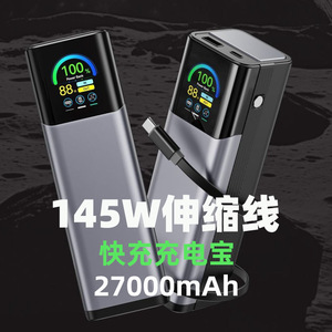 145W充電パック、内蔵マグネット式伸縮ケーブル、大容量、飛行機対応、スマートディスプレイ、急速充電、機内持ち込み可能