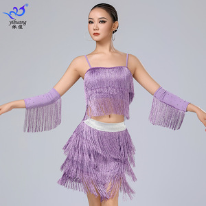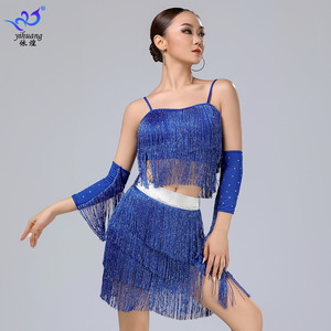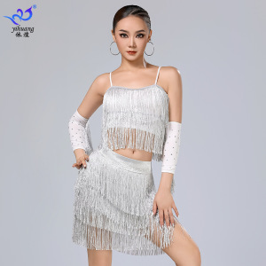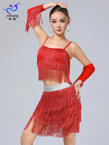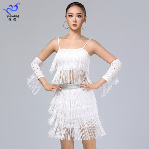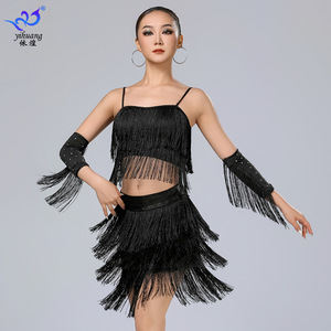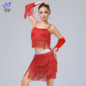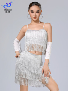 ラテンダンススカートパフォーマンス服サスペンダータッセルスカートスーツステージパフォーマンス服プロの練習服ダンス服競技服