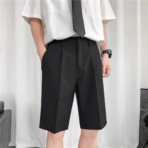 メンズサマースーツショーツ、ストレートレッグ、ルーズ、韓国風、カジュアル、軽熟、ビジネスミッドパンツ、スリムフィット、5点パンツ、トレンド