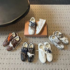 2025 新レトロカラーラビングダッドシューズ女性 MIU 共同ブランド道徳トレーニングシューズカラーダブルレースアップ厚底スポーツシューズ