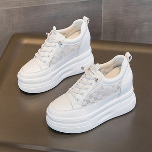 2025 新しいインナー高さの厚底カジュアルスポーツシューズ女性のロートップレースアップ韓国スタイルのトレンディなポップコーン女性の白い靴