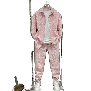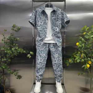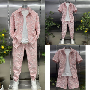 新しい夏フローティングジャカードスーツシャツラペル薄い半袖ツーピースエンボスショーツメンズカジュアル