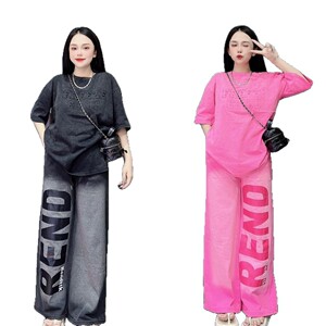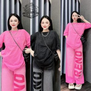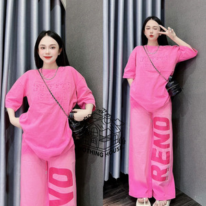 アメリカンファッションスーツ女性の夏の新しいレトロプリント半袖ルーズワイドレッグパンツカジュアルツーピースセットイン薄型