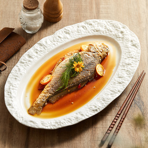 陶瓷鱼盘高颜值盘子菜盘家用大号创意简约餐具餐盘椭圆盘酒店摆盘