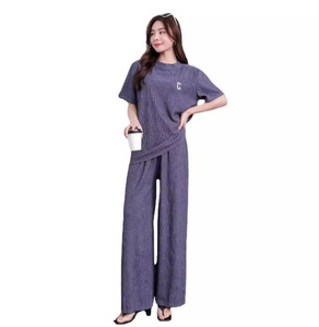 東南アジアの人気の千葉パンツプリーツ刺繍スーツレディースサマーパンツツーピースホームカジュアルファッションスーツ