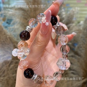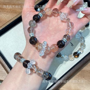 Qiaoen ナチュラルブラックゴールドスーパーティークリスタルブレスレットクリスタルブレスレットホワイトクリスタルアーセンタル DIY デザイン卸売
