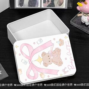 インス風ピンクリボンブリキ箱高見えガールフォトカード素材かわいい収納ボックステーブルステッカー収納