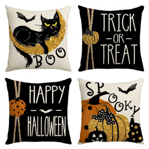 跨境亚马逊temu爆款亚麻批发万圣节抱枕套毛绒方形枕套舒适靠枕套