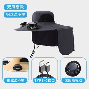 カーテンハット特大つばソーラーファンハット夏の屋外釣りサンハットショールネックプロテクター漁師帽子男性用