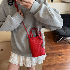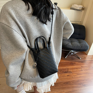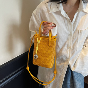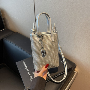 韩版小众编织单肩包2025夏季新款时尚斜跨包简约百搭手提水桶包女