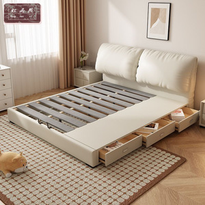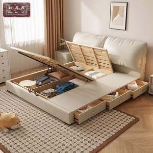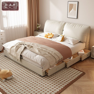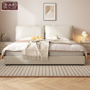 奶油风大象耳朵真皮床意式双人主卧软包床小户型储物婚床轻奢风