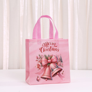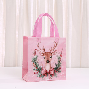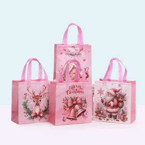 ピンクの不織布バッグクリスマスギフトバッグパーティーギフトハンドバッグラミネート立体バッグ卸売包装袋
