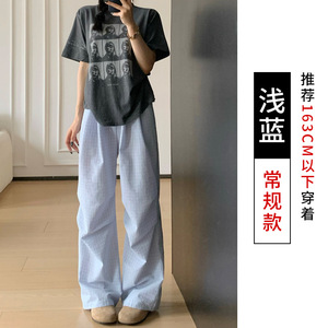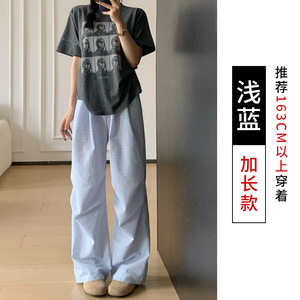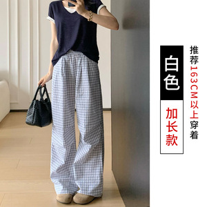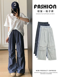 女性用レトロプリーツチェック柄パンツ、夏用薄手、ゆったりとしたカジュアルなフロアレングスパンツ、ゆったりとしたストレートレッグワイドレッグパンツ