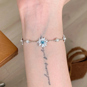 ライトラグジュアリースタイル S925 シルバーデイジーパールブレスレット女性用、芸術的で多用途なマイクロインレイクラフト気質フラワーネックレス