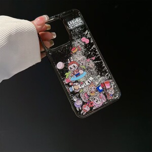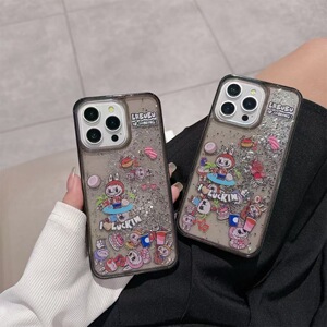 Apple 16promax 携帯電話ケース iPhone16 流砂スライド 14 ビルディングブロック 11 に適した漫画 labub セット
