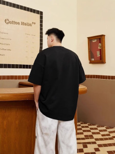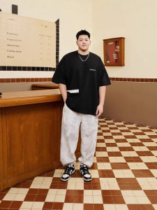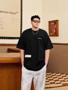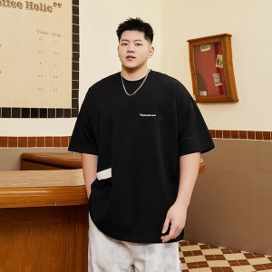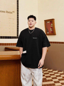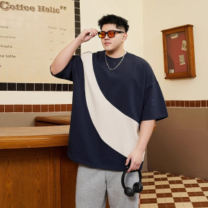 潮牌大码男装2025夏季新款胖子宽松拼接短袖t恤男加肥加大半袖衫