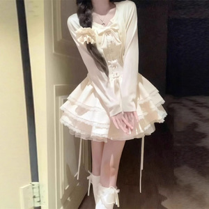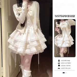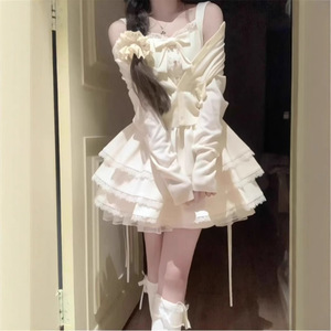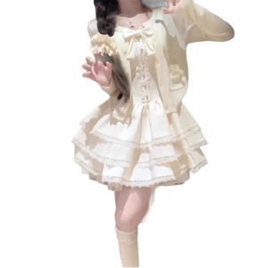 小柄な人向けの夏の純粋な欲望の高級サスペンダーケーキドレス+アプリコットカーディガン日焼け止め2点セット