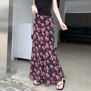女性のためのリゾートスタイルシフォンプリントヒップカバースカート2025春夏の新しいスタイルの気質年齢を軽減するフェミニンな花柄ロングスカート