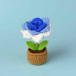 渐变蓝-尖角玫瑰盆栽(中号迷你毛线盆)