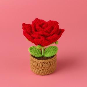 红色-尖角玫瑰盆栽(中号迷你毛线盆)