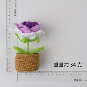 渐变紫-尖角玫瑰盆栽(中号迷你毛线盆)