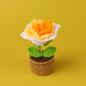 渐变黄-尖角玫瑰盆栽(中号迷你毛线盆)