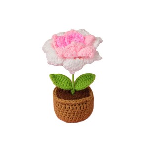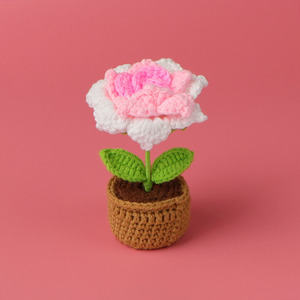 渐变韩粉-尖角玫瑰盆栽(中号迷你毛线盆)