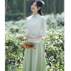 新しい中国風の漢要素禅茶服チャイナドレス中華民国スタイル改良された漢服レトロ文学と芸術的な国民風の妖精気質の婦人服