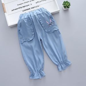 ジーンズ、レディースパンツ、夏用薄手パンツ、女の子ベビー防蚊パンツ、夏用オリンピックアイスシルクコットン子供服