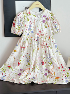 Zhilu 子供服女の子ドレス 2025 夏純綿バブル半袖花妖精親子レディーススカート