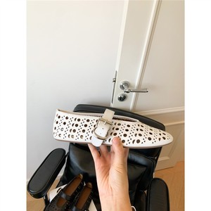シープスキンバージョン~ラウンドトゥ中空フレンチシンプルメリージェーンシューズ浅口ワンラインバックルバレエフラットサンダル女性用