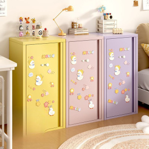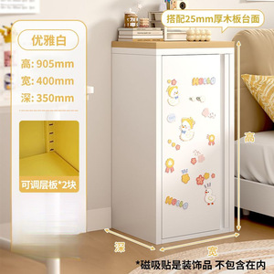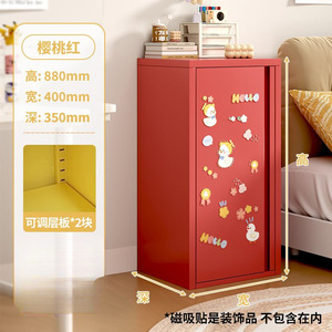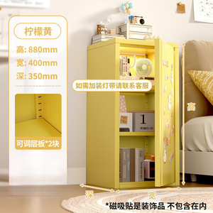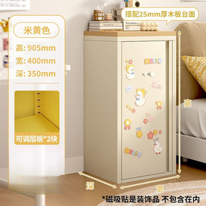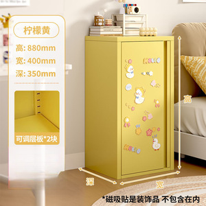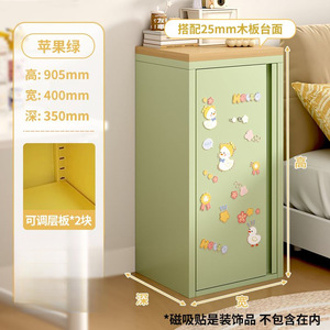 奶油风铁皮收纳柜单门夹缝柜超窄卧室床头柜多巴胺家用铁艺储物柜