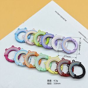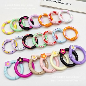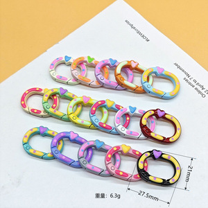 スプリングリングキャンディーカラースプリングバックルアクセサリーカラフルな愛ペイントブックリングカードリングキーホルダーオープン diy ジュエリー