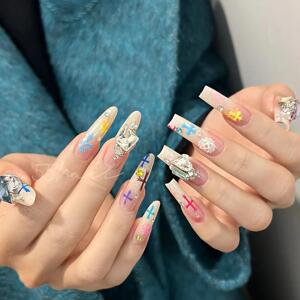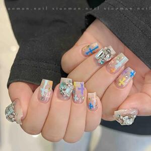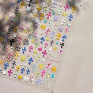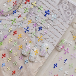 カラフルなクロスクローハートネイルアートステッカーインターネットセレブ人気キャンディーカラーレリーフ薄型タフネイルアートステッカーアクセサリー