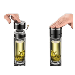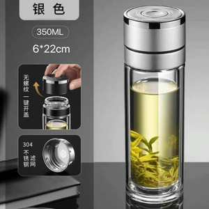 新しい男性用茶水分離カップ、車載クイックオープンカップ、ワンクリックオープン蓋、二重層ガラスカップ、ポータブルプッシュ式ウォーターカップ