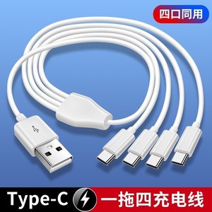 USB一拖四充电线4个typec接口多头合一扁口适用华为vivo小米OPPO