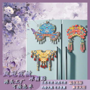 カスタマイズされた金属製冷蔵庫用マグネット、鳳凰の冠と霞のマント、鳳凰の冠と雲の肩、オペラの霞のマント、エレガントなタッセル、国民的トレンドの文化的で創造的な冷蔵庫用マグネット