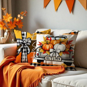 クロスボーダー感謝祭クッション枕カバー北欧リネンソファ枕カバーシンプルなカボチャレタープリントクッションカバー