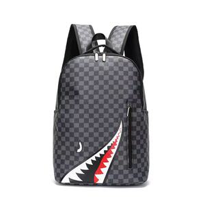 新しいシンプルな個性ファッションサメバックパックメンズバックパックチェック柄高校生大学生バッグコンピュータバックパック